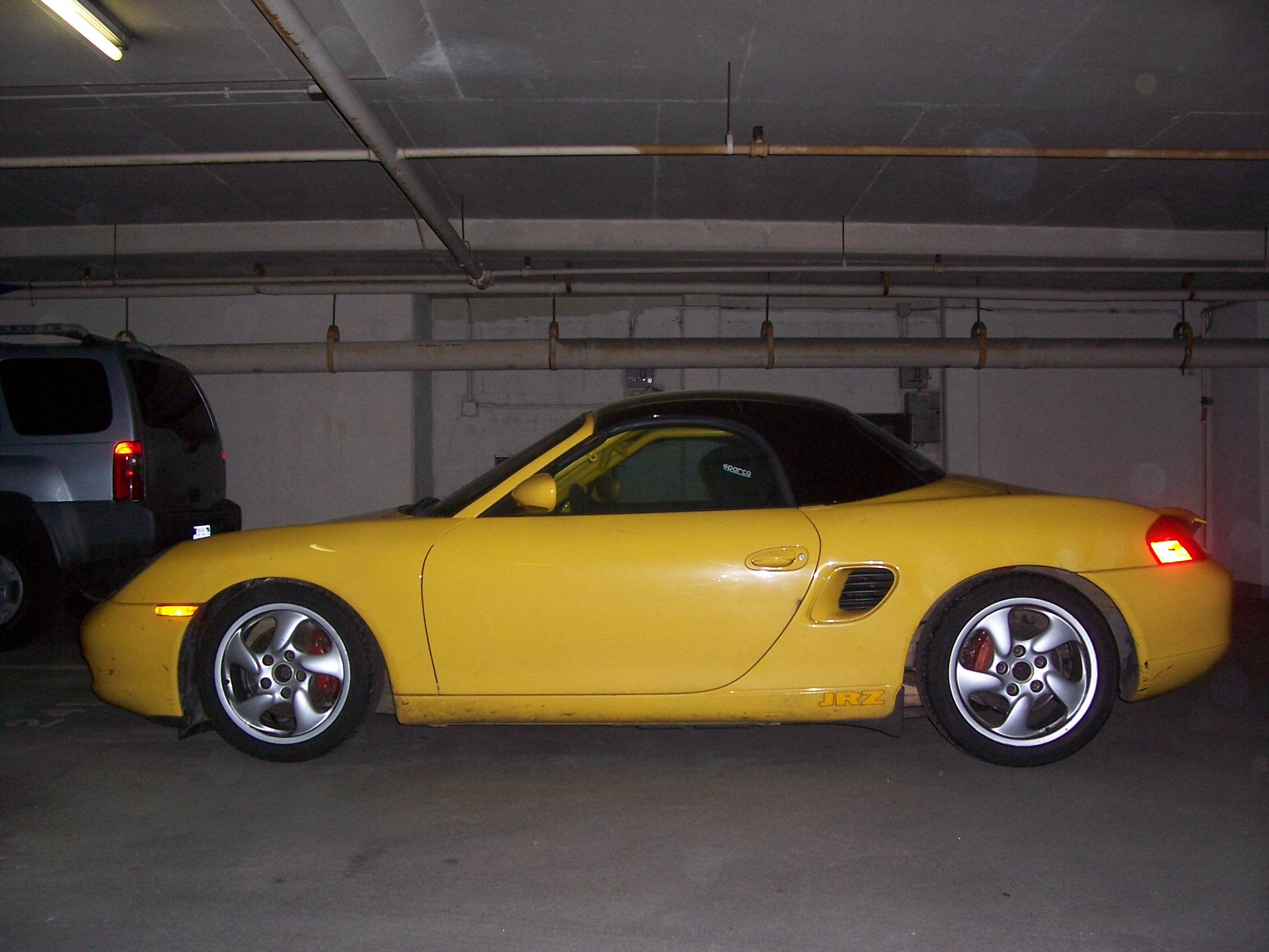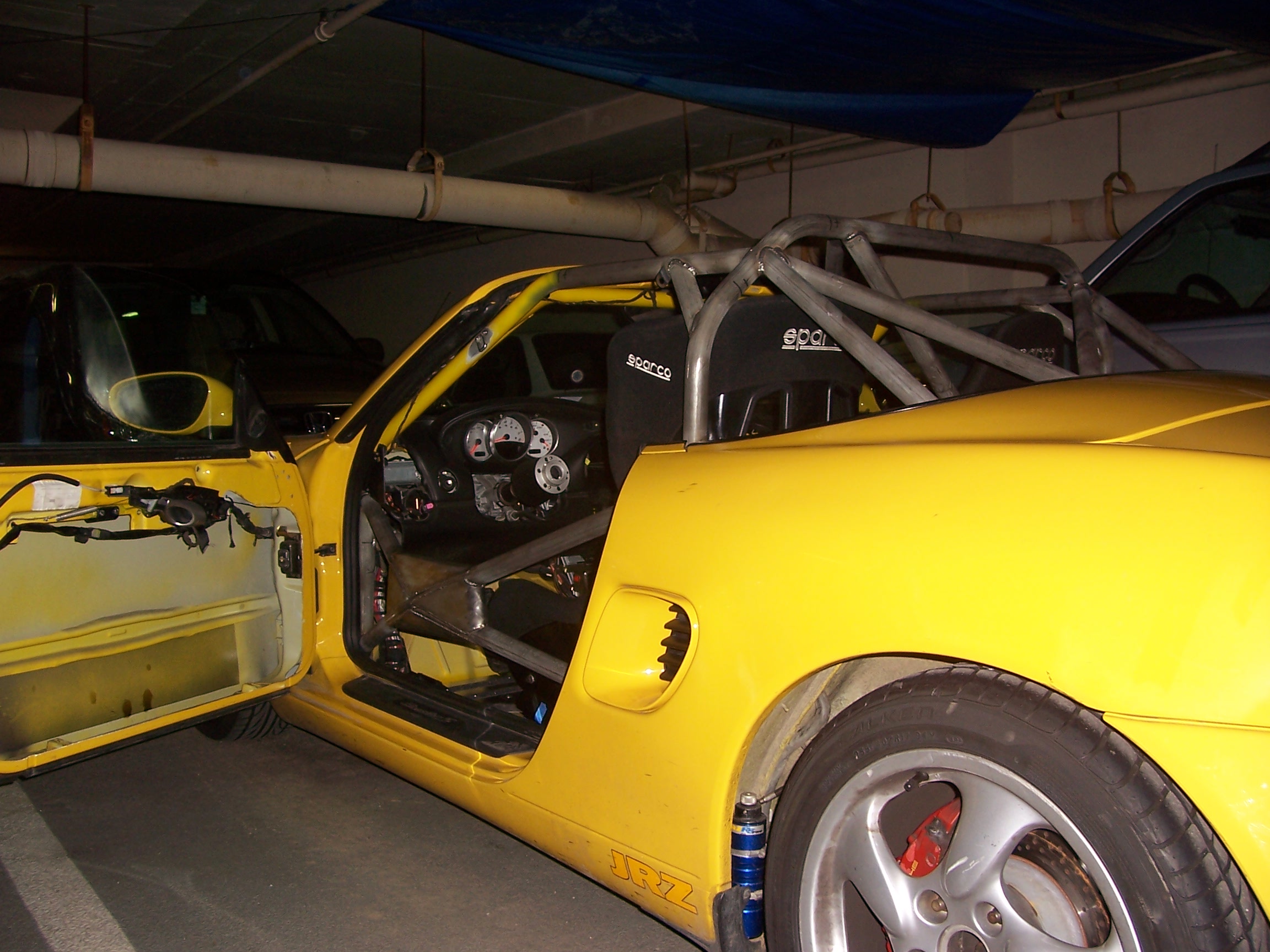 Dirty Molly now *looks* like a race car. We replaced the convertible top with a hard top. We chose a black top to preserve the Boxster look.
