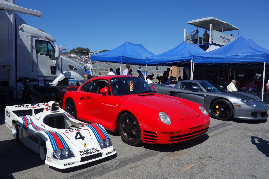 Legends of Le Mans was the theme of Rennsport Reunion V at the Mazda Raceway Laguna Seca. The main event square showcased three Le Mans legends: 1951 class winner 356 SL, Porsche first overall winner 917, and this year winner 919. This 917-001 was from the Porsche museum, wearing the paint scheme of the 1970 winner. Kenny and Cindy were fortunate to see the original winning chassis 917-023 at their earlier visit to Palmaz Vineyard in Napa. https://teamshum.com/2010/04/