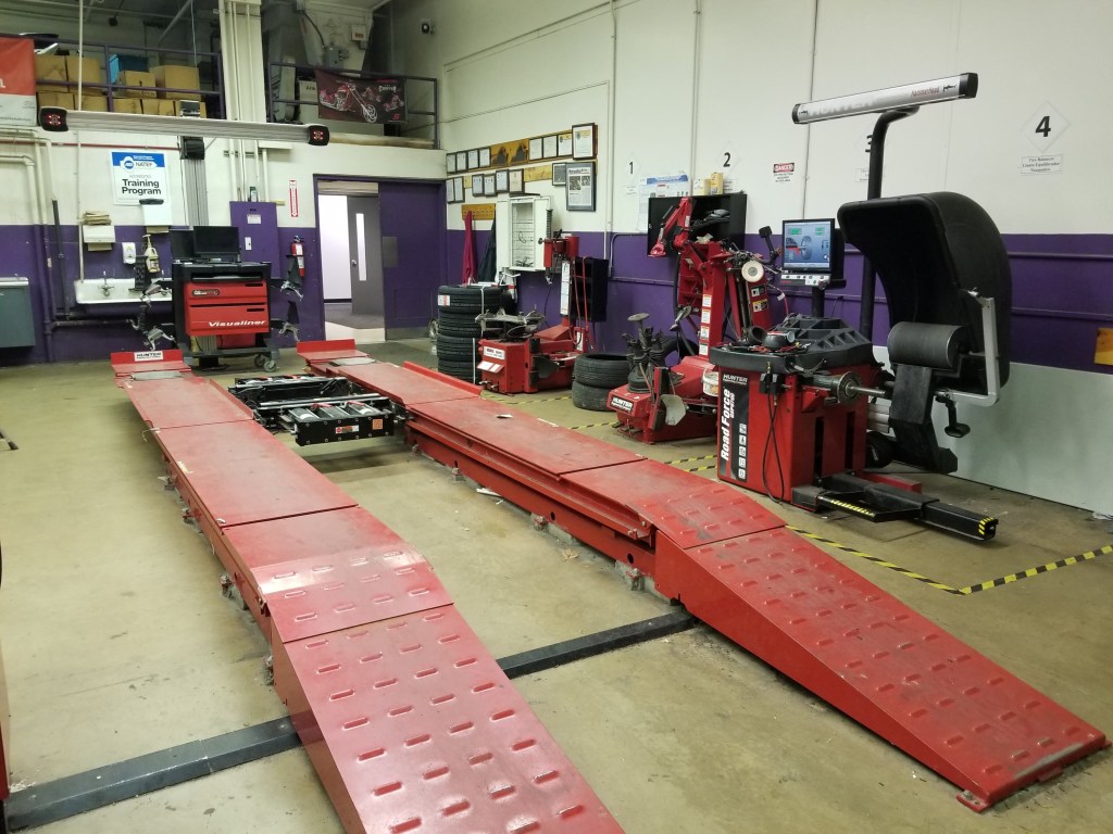 After all these years working on his race cars on jack stands, Toby learned from his neighbor that Arlington County offers a “DIY Auto Mechanic” class that includes lift time! The shop was VERY WELL equipped with Snap-On everything, laser alignment rack and Hunter tire mounting and balancing machines.