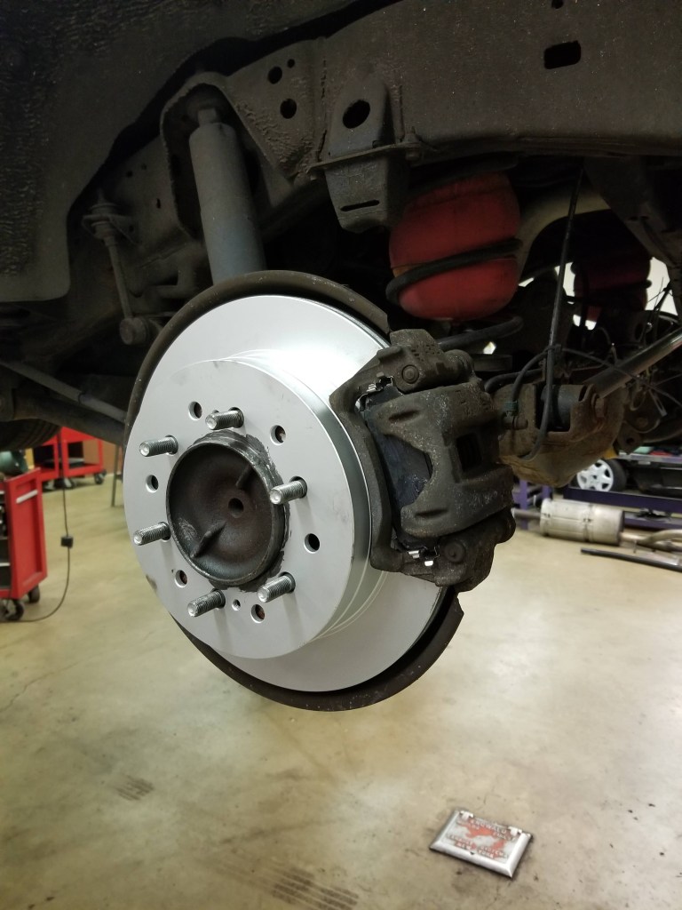 First project was to replace brake pads and rotors. It’s been years since the wheels last came off. They were stuck onto the brake rotors and it took PB Blaster, big hammer hits, and roundhouse kicks by Toby, his instructor and classmates to get them off.