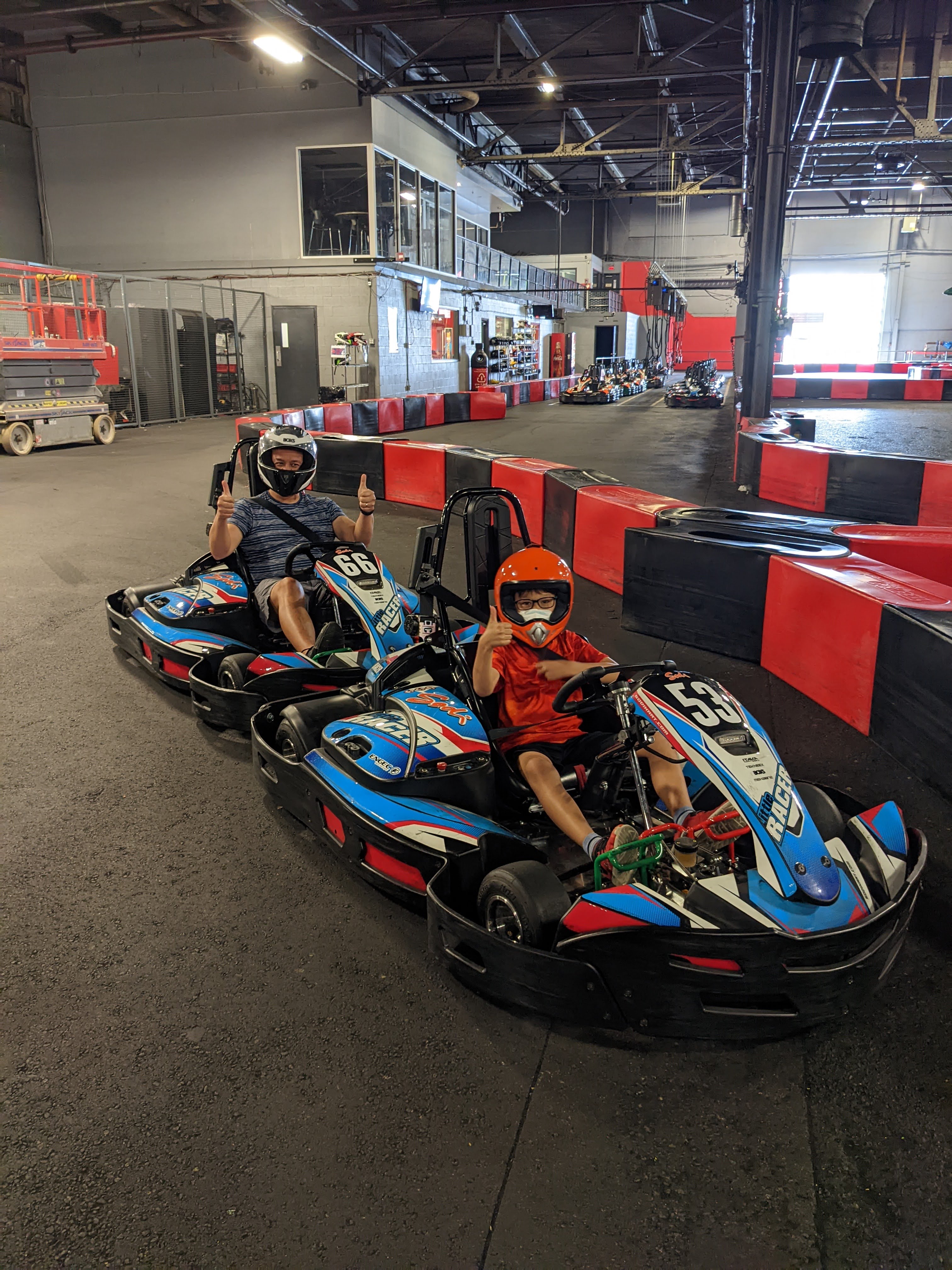 Oliver and Theo finally got to visit their grandparents in Montreal after a long COVID break. Montreal is a “racing mad” city and there are kart tracks everywhere, including one only 3 minutes from grannies’ house (adult karts only though).