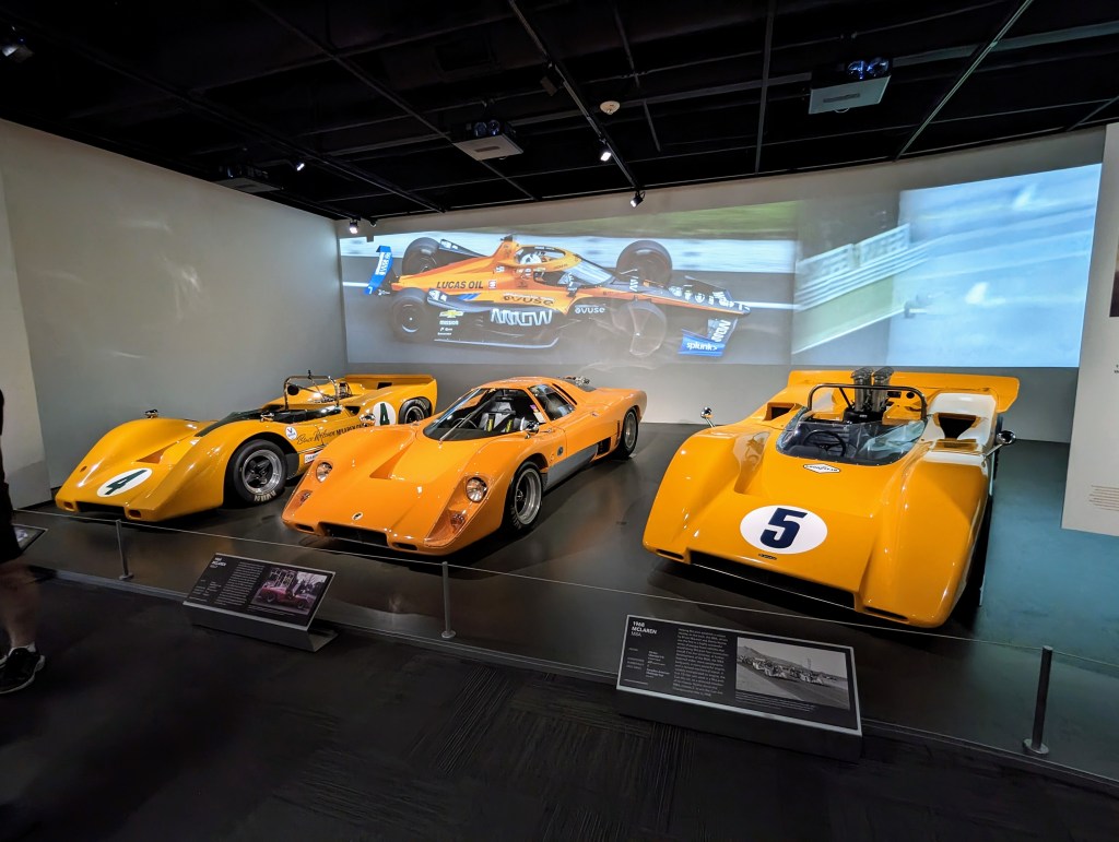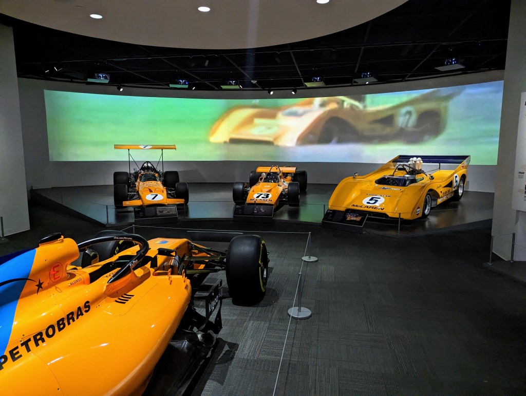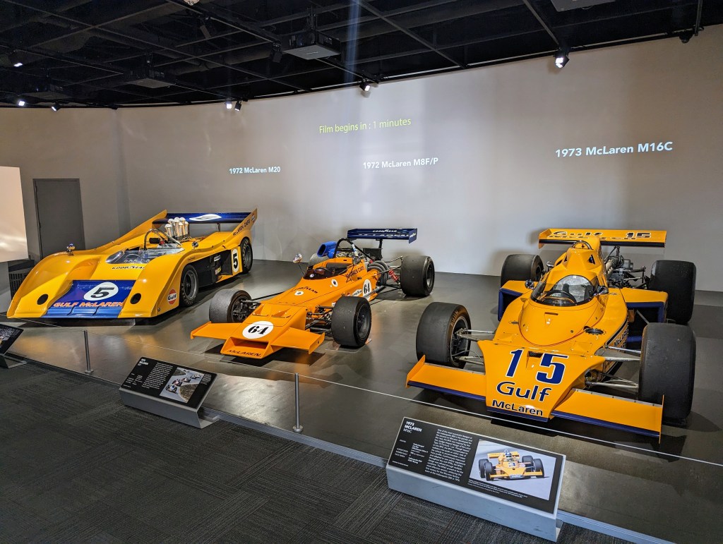 Just across the hall were Papaya McLaren race cars, before sponsors dominated liveries. The collection included the all conquering M8 and the MCL33 F1, which returned to its traditional color in 2018.