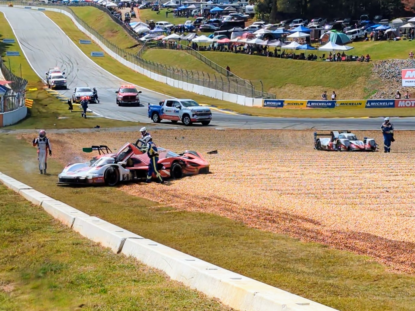 Petit LeMans Jonathan’s SC Targa drew the attention of the pro photographic at the Porsche Corral. The PCA Corral overlooks the back straight into turn 10a and 10b chicane, where they witnessed two crashes early on. Unfortunately, one involved a Porsche 963. Share this:Like Loading... Related