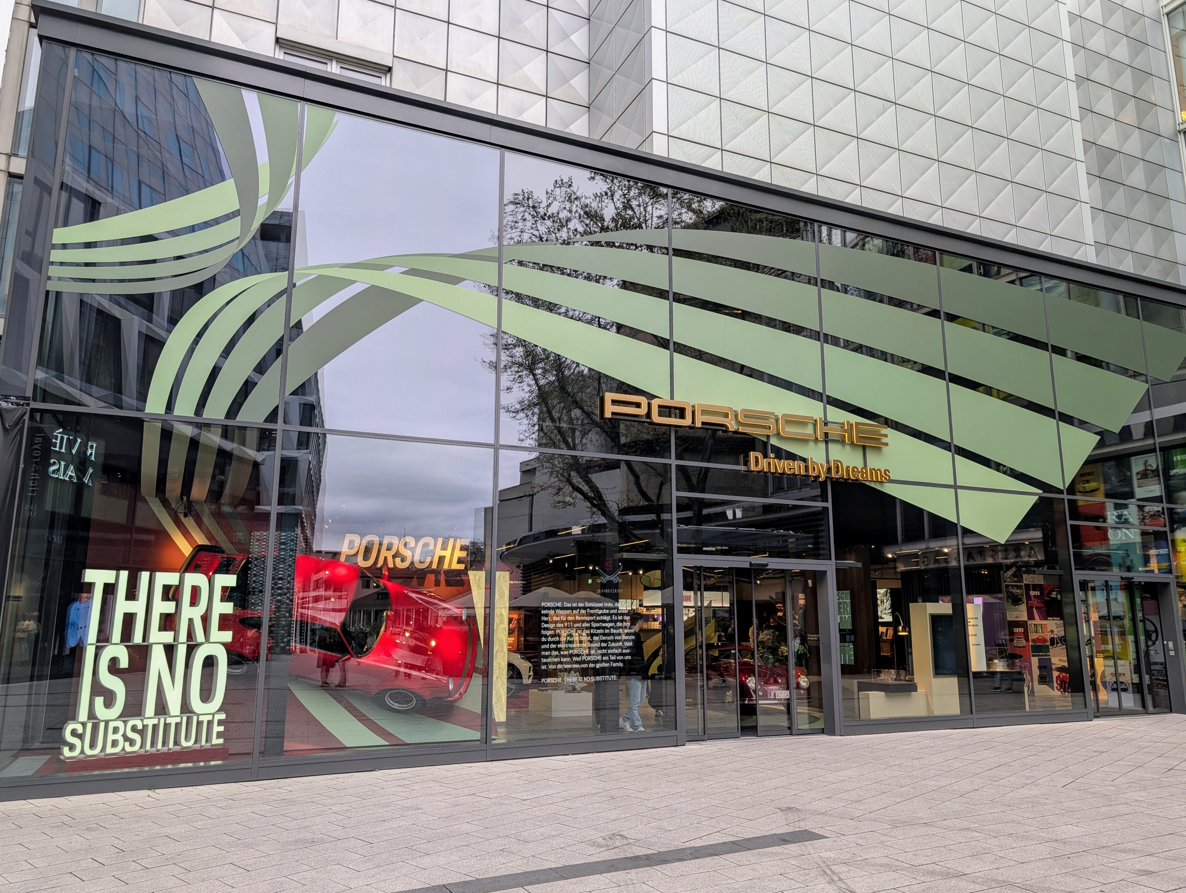 Finally, on their way to dinner, Toby made a quick stop at the “Porsche Driven by Dreams” brand store.